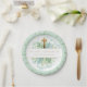 Bringen Sie Ihre ganze religiöse Veranstaltung mit unseren koordinierenden Dekorelementen wie dieser schönen Papiertafel zusammen. Fügen Sie Ihre Veranstaltung (Taufe, Erste Kommunion, Bestätigung, Religious Retreat ...) mit dem Textfeld zur Verfügung gestellt. Elegante, handbemalte Aquarell in einer Mischung aus helltürkisblauem und hellblauem Minzgrün. Delikate Aquarellfärbungen und Glitzern auf dem Hintergrund und das Laub rund um den Teller. Der äußere Rand ist blassgrün. Koordination von Servietten, Foto-Kulisse, Favoriten, Aufkleber und Etiketten, Einladungen und vieles mehr in unserer Kollektion "Unisex Elegant Greenery Religious Event".