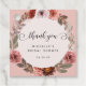 Exquisite Gefallen Tag mit rot rosa Blumenkranz und Phrase "Danke" in attraktiver würdevoller Hand geschrieben Kalligraphie. Ideal für jede Veranstaltung. Hintergrund in einem sanften romantischen rot rosa Ton. Teil des Paradieses in der Rose Hochzeit- und Veranstaltungskollektion.