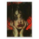 Eine Dame mit ihrem Gesicht in den Händen mit einem roten Hintergrund, die von einer grungelösten KI erzeugt wurde