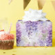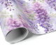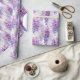 Umschlagpapier wird mit einem schönen lila Blumendruck gezeigt. Passen Sie dieses Objekt an oder kaufen Sie, wie es ist. Lizenzierte Printwerbung