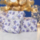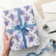 Das Umschlagpapier wird mit einem schönen blauen Lila-Blumendruck gezeigt. Passen Sie dieses Objekt an oder kaufen Sie, wie es ist. Lizenzierte Printwerbung