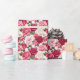 Das Umschlagpapier wird mit einem schönen rosa Rosen Blumendruck gezeigt. Passen Sie dieses Objekt an oder kaufen Sie, wie es ist. Lizenzierte Printwerbung