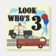 Ein Polizeikreuzer, ein Motor, Ballons und ein Text, der "Look Who's 3" lautet, werden auf unseren Helden des 3. Geburtstags in Jedermanns Design-Trikots, Tasse, Karten, Aufkleber, Geburtstagsknöpfe und vieles mehr vorgestellt.