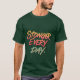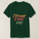 Dieses T - Shirt-Design zeichnet sich durch den Begriff "Stärker jeden Tag" in einem fett gedruckten, serifenlosen Schriftart aus, wobei jeder Buchstabe zwischen kräftigen, kontrastreichen Farben wechselt. Das Design ist dynamisch und modern, mit einem soliden hellblauen Hintergrund für Kontrast.