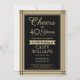 Laden Sie Ihre Familie und Ihre Freunde zu einem eleganten Geburtstagsfest mit individuellen Party Einladungen in Schwarz und Gold ein. Alle Formulierungen auf dieser Vorlage (inklusive "Cheers to 40 Years") sind für einen 40. Geburtstag Set, können aber für jedes Jahr oder jede Art von Veranstaltung einfach personalisiert werden. Das Design besticht durch eine moderne gestreifte Grenze, eine stilvolle Skriptkalligraphie und die klassische Vintage Deko-Typografie. Bitte beachten Sie, dass Gold farblich gedruckt ist, nicht metallische Folie. Das geschlechtsneutrale Design ist auch für einen Mann oder eine Frau geeignet. Herzlichen Glückwunsch zum Geburtstag!