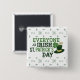 "Jeder ist irisch am St. Patrick's Day" grüner Hut und Kleeblatt typografischer Knopf mit keltischen Wirbel und geblüht Hintergrund.