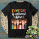 Förderung von Freundlichkeit und Inklusivität mit diesem "Jeder ist hier willkommen"-Design. Ideal für Zuhause, Klassenräume und Unternehmen verbreitet es eine Botschaft der Akzeptanz, des Diversity und der Zugehörigkeit. Zeigen Sie Ihr Engagement für die Schaffung eines gemütlichen und sicheren Raums für alle.