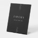 Dieses elegante, schwarze Gastgeschenk Hochzeit-Schild der Everly Collection zeichnet sich durch knallige Weißtöne, geometrische Deko-Akzente und redaktionelle Abstände aus. Die schlichten, dünnen Dreizeilentexte bilden einen eleganten Rahmen für ein raffiniertes, modernes minimalistisches, Abend-orientiertes Design.