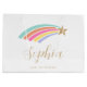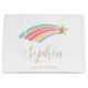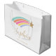 Feiern Sie einen besonderen Geburtstag mit dieser niedlichen Rainbow Shooting Star Geschenktasche. Dieses stilvolle Design kann mit einem Namen, "Happy Birthday" Gruß und benutzerdefinierten Zeitalter personalisiert werden. Eine einfache Abbildung mit einer hübschen pastellfarbenen Palette aus rosa, orange-pfirsichfarben, gelb, blau-grün, lavendelblau und gold. Man glaubt, dass ein Schießstar viel Glück symbolisiert und Wünsche wahr werden, was es zu einem schönen Geburtstagsmotiv für eine Tochter, Enkelin, Schwester oder beste Freundin macht!