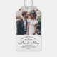 Senden Sie Freudenwünsche als der neue Mr. & Mrs. Fügen Sie Weihnachtsgeschenke und Feiertagsvorlieben mit stilvollen Foto-Geschenketiketten eine elegante Touch hinzu. Das Bild und alle Formulierungen auf dieser Vorlage sind einfach zu personalisieren. Das moderne, minimalistische Schwarz-Weiß-Design besticht durch eine handgeschriebene Schriftzeichen und ein Foto für Ihre Hochzeit. Familie und Freunde werden dieses schicke, maßgeschneiderte Tag Liebe. Fröhliche Wünsche für ein frohes Nachsehen!