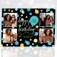 Erstellen Sie eine stilvolle Foto Collage Grußkarte! Personalisieren Sie die Vorlage mit vier bevorzugten Fotos, dem Namen des Empfängers und dem Geburtstagsalter. Ein lustiges Design mit runden Konfetti, Ballons und "Happy Birthday" in einem trendigen Drehbuch. Ideal für Familie, Kinder, Freunde und Haustiere! Druckfarben: aquamarin grün, blau, schwarz, weiß und gold.