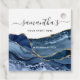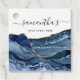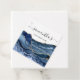 Elegante Gaumenmarke mit herrlicher Agate-Textur in einer wunderschönen Mischung aus staubblauen, marineblauen und königsblauen mit goldenem Glitzer. Name in der modernen handgeschriebenen Kalligraphie mit Swashes. Möglichkeit zum Hinzufügen eines Ereignisses, einer kurzen Meldung und des Ereignisses. Oben in Weiß. Auch erhältlich mit Oberteil in Gold.