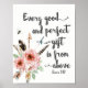 Jedes Gute und Perfekte Geschenk ist von Above Art Print ein wunderschöner Bibelvers, der in dunkelgrauem Text geschrieben und durch rosa, Aquarellfarben-Blume ergänzt wird. Das wäre perfekt für das Kinderzimmer.