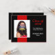 Diese Einladung zum Abschluss im Rot-Band-Stil ist perfekt für alle Unis, Highschool-Absolventen oder alle Hochschulabsolventen. Einfach, elegantes Design mit schwarzem Hintergrund mit vertikalem Band in Schulfarben. Die Hintergrundfarbe kann an die Farbe der Schule angepasst werden. Große Einladung für jeden männlichen oder weiblichen Absolvent.