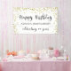 Feiern Sie jedes Jahr Geburtstag mit dem Banner "HAPPY BIRTHDAY" personalisiert mit ihrem Namen und wie viele Jahre sie feiern. Modernes, elegantes Design mit goldfarbenem Konfetti-Rahmen und schwarzem Script-Schriftart, der in einen anderen Schriftart-Stil oder eine andere Farbe geändert werden kann, um sich mit Ihrem Party-Thema abzustimmen. Wenden Sie sich an den Designer, wenn Sie dieses Design modifizieren möchten, ein anderes Produkt erwerben möchten oder wenn Sie Gegenstände koordinieren möchten, um Ihr Party-Ensemble zu vervollständigen.