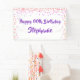 Feiern Sie mit diesem personalisierten Banner jedes Jahr Geburtstag mit Wünschen für einen glücklichen ##TH BIRTHDAY. Modernes, elegantes Design mit einem lila und rosa Konfetti-Rahmen und bearbeitbarem lila Pinsel-Script-Schriftart, der in einen anderen Schriftart-Stil oder Farbe geändert werden kann, um mit Ihrem Party-Thema zu koordinieren. Wenden Sie sich an den Designer, wenn Sie dieses Design modifizieren möchten, ein anderes Produkt erwerben möchten oder wenn Sie Gegenstände koordinieren möchten, um Ihr Party-Ensemble zu vervollständigen.