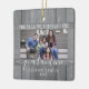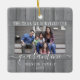Feiern Sie es durch familiäre Zusammenkunft auf Zuhause mit einem maßgeschneiderten 2-Foto "The Year We Survived The Quarantine" Imitate Marmor Platz Weihnachtsschmuck. Alle Texte und Bilder auf dieser Vorlage sind einfach zu personalisieren und können auf Vorder- und Rückseite unterschiedlich oder gleich sein. (IMAGE PLACEMENT TIP: Eine einfache Möglichkeit, ein Foto genau so zu zentrieren, wie Sie es gewollt haben, ist es, es einzuschneiden, bevor Sie es auf die Zazzle-Website hochladen.) Das moderne Bauerndesign besticht durch eine rustikale, graue Holzgrenze, elegante handgeschriebene Schriftzeichen-Kalligraphie, Typenschrift und Familienname und das Jahr sowie zwei Bilder Ihrer Wahl. Dieses einzigartige und moderne Coronavirus sozial diststanierende Ornament macht eine niedliche und humorvolle Ergänzung zu Ferienbaumdekorationen oder eine lustige Covid-19 pandemische Xmas Geschenkidee.
