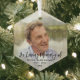 Ehre einen verstorbenen Lieben für den Urlaub mit einem maßgeschneiderten Foto Hexagon-förmigen Glas Weihnachtsschmuck. Bild und Text auf dieser Vorlage sind einfach zu personalisieren. "In liebevoller Erinnerung an" kann man ändern in "ewig in unserem Herzen", "ein Engel im Himmel" oder eine andere Formulierung. Das moderne minimalistische Schwarz-Weiß-Overlay-Design bietet einfache handgeschriebene Schriftzeichen und ein Bild Ihrer Wahl. Dieser einzigartige Beileid-Sake macht eine durchdachte Begräbnisgeschenkidee und fügt den Xmas Zuhause Dekorationen eine stilvolle Touch hinzu. Es ist eine elegante Art, einem verstorbenen Familienmitglied oder Freund Tribut zu zollen.