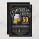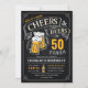Stilvolle Beifall und Biere zu 50 Jahren Typografie-Design in Holzkohlefaserplatte schwarz, gold und weiß, Custom es mit Ihrem eigenen Party-Informationen, Spaß und einzigartig, ideal für Überraschung jedes Alter Erwachsenengeburtstag Einladung für Männer, oder Jubiläum Party Einladungen für jeden Anlass.