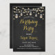 Einladung zur Geburtstagsparty. Rustikales Design mit schwarzem Chalkboard-Muster. Kein Alter aufgeführt! Enthält Schriftart mit weißen und goldenen Schriftzeichen, Maurergläser und Feenschärfenlampen.