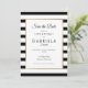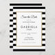 Mit einem klassischen Schwarz-Weiß-Streifen-Hintergrund bietet diese elegante Geburtstagskarte Save the Date eine elegante Imitat-Goldfolie, die Ihr Set für Save the Date Details in schicker Typografie umrahmt. Entwickelt von Thisisnotme©