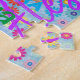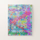 Dieses lustige Puzzle zeichnet sich durch ein farbenfrohes Girly-Design aus, in dem der Name Ihrer Wahl in zahlreichen Schriftart und Farben erscheint. Die Namen werden auf einem blauen Hintergrund mit bunten Blume angezeigt. Gutes Geschenk für alle, die ein personalisiertes Rätsel mögen!