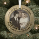 Feiern Sie ein fröhliches goldenes 50-jähriges Hochzeitstag mit einem maßgeschneiderten Foto "Verheiratet 50 Jahre" schwarz und goldfarben rund Glas Weihnachtsschmuck. Bild und Text auf dieser Vorlage sind einfach zu personalisieren. (IMAGE & TEXT DESIGN TIPS: 1) Um die Position der Formulierung anzupassen, fügen Sie Leerzeichen am Anfang oder Ende. 2) Um das Foto genau so zu zentrieren, wie Sie gewollt haben, schneiden Sie es quadratisch aus, bevor Sie es auf die Zazzle-Website hochladen.) Das Design zeichnet sich durch eine goldene Imitat-Folie, stilvolle Vintage Kunst-Deko-Typografie, die Namen und das Datum der Ehepaare und ein Foto Ihrer Wahl aus. Dieser einzigartige und moderne Ehering-Sake fügt Xmas Zuhause Dekorationen eine elegante Touch hinzu. Bitte beachten Sie, dass Gold farblich gedruckt ist, nicht metallische Folie. Herzlichen Glückwunsch und zum 50. Jahrestag!