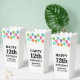 Herzlichen Glückwunsch zum Geburtstag Popcornboxen mit bunten Ballons für ein Party eines Kindes. Personalisiert mit jedem Alter, dem Namen des Geburtstagsjungen oder -mädchens und dem Datum. Ändern Sie die Hintergrundfarben oder den Schriftart, indem Sie auf die Schaltfläche klicken, um das Design zu bearbeiten.