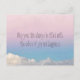 Die Postkarte mit dem Himmel, die in weichem Rosa gestrichen und vom Sonnenuntergang lila wurde.