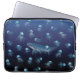 Ein Beispiel für ein Wal und eine Qualle, die in den Tiefen des Ozeans schwimmen. Ein blaues, mariniertes Quallenmuster.