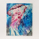 Watercolor original artwork of pink jellyfish in underwater ocean theme. Ocean sea art theme. Colorful jellyfish.