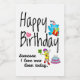 Herzlichen Glückwunsch zum Geburtstag! Jemand, den ich Liebe hatte, war heute geboren. Ein lustiges und niedliche Geburtstag Design mit einem hübschen Teddybär mit einem Geschenk und einem lustigen Bleistift, der die Geburtstagswünsche schreibt. Ein perfektes Spiel für Kleidung.