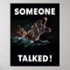 Dieses Vintage Poster aus dem Zweiten Weltkrieg zeigt einen ertrinkenden Seemann, der auf Sie aus der Mitte des Ozeans zeigt. Es heißt: "Jemand hat gesprochen." Feiern Sie mit diesem digital restaurierten Vintagen Kriegsposter aus dem The War Is Hell Store die amerikanische und die WW2-Geschichte. Woll mehr Militär- und Geschichtsprodukte? Karo