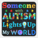 Inspiration für "Jemand mit AUTISM Lights Up My WORLD" mit bunten Autismus-Rätsel, eine symbolische Glühbirne und Beleuchtung auf der Botschaft zur Unterstützung autistischer Kinder und ihrer Familien.
