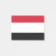 Die Jemen-Flagge ist ein horizontales Triband. Die verwendeten Farben in der Flagge sind rot, weiß, schwarz. Der Anteil der Jemen-Flagge beträgt 2:3. Die Flagge des Jemen wurde 1990 adoptiert. Die erste Verwendung des aktuellen Flaggendesigns erfolgte 1990.