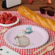 Jemima Puddle Duck mit pastellrosa Hintergrund.
