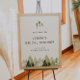 Dieses Brautparty-Willkommensschild mit rustikalen Kiefernbäumen und einem böhmischen handgeschriebenen Schriftart. Dieses Begrüßungszeichen ist vollständig editierbar und eignet sich perfekt für Ihre Veranstaltung zum Thema Berg oder Wald.