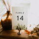 Diese Tischnummer bietet rustikale grüne Kiefernbäume und einen einfachen serifenlosen Schriftart. Diese Tischnummern zeichnen sich durch die gleiche Grafik auf der Vorder- und Rückseite aus und sind die perfekte Ergänzung zu jedem Berg- oder Waldtheater.