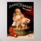 Niedliches Vintages Theaterposter für Jenny Yeamans mit einem kleinen Mädchen, das ihren Hund in einem Holzfass wäscht. Die Hundeseife und die Bürste sind auf dem Boden. Ideal für Liebhaber von Vintagen Theaterplakaten und Hundebesitzern.