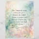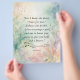 Dieses Aquarelldesign besticht durch delikate Botanicals in sanften Blau-, Grün- und Korallentönen und schafft eine ruhige und verträumte Atmosphäre. Die sanfte Farbmischung verleiht dem Ganzen ein Gefühl von Ruhe und Harmonie. Der inspirierend Bibelverse Jeremiah 29:11 steht im Mittelpunkt dieser Komposition, elegant dargestellt, und erinnert uns an Hoffnung und göttlichen Zweck. Die Wirkung ist insgesamt erfreulich und beruhigend, sodass sie eine perfekte Ergänzung zu jedem Raum ist, der Ermutigung und Gelassenheit braucht. Dieses Kunstwerk erfasst das Wesen von Natur und Glauben auf visuell atemberaubende Weise.