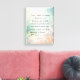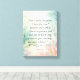 Dieses Aquarelldesign besticht durch delikate Botanicals in sanften Blau-, Grün- und Korallentönen und schafft eine ruhige und verträumte Atmosphäre. Die sanfte Farbmischung verleiht dem Ganzen ein Gefühl von Ruhe und Harmonie. Der inspirierend Bibelverse Jeremiah 29:11 steht im Mittelpunkt dieser Komposition, elegant dargestellt, und erinnert uns an Hoffnung und göttlichen Zweck. Die Wirkung ist insgesamt erfreulich und beruhigend, sodass sie eine perfekte Ergänzung zu jedem Raum ist, der Ermutigung und Gelassenheit braucht. Dieses Kunstwerk erfasst das Wesen von Natur und Glauben auf visuell atemberaubende Weise.