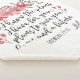 Text in modern kursiv, aus Jeremiah 29:11 "Denn ich kenne die Pläne, die ich für dich habe", erklärt der LORD, "plant, dich zu erfreuen und dir nicht zu schaden, Pläne, dir Hoffnung und eine Zukunft zu geben". Der Bibelvers ist von einem Blumendesign in Aquarelltönen in Rot und Grau gerahmt.