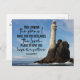 Auf der Postkarte der Inspirationsziffer wird ein Foto dargestellt, das an der irischen Küste mit einem Leuchtturm, umgeben von blauem Himmel und Wasser, aufgenommen wurde. Es enthält einen Teil der Bibelverse Jeremiah 29:11, "Denn ich kenne die Pläne, die ich für dich habe", erklärt der Herr, "plant dir Hoffnung und eine Zukunft zu geben." *