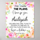 Jeremiah 29:11 Pink Floral Personalize Scripture Poster