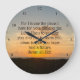 Denn ich kenne die Pläne, die ich für dich habe, erklärt der Herr. Pläne, Ihnen zu gedeihen und nicht Ihnen zu schaden, Pläne, Ihnen Hoffnung und eine Zukunft zu geben. Jeremiah 29:11 Bibelverse auf einer schönen Uhr des Meeressonnenaufgangs. Dieses inspirierende Zitat-Geschenk enthält Ihren eigenen Text unter einem anregenden biblischen Zitat und inspiriere ein Christliche, an Gott zu glauben.