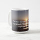 Kaffee Tasse mit Sonnenaufgang und der ermutigenden Bibelverse aus Jeremiah 29:11.