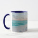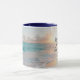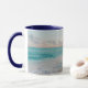 Die inspirierende Zitat-Tasse zeigt einen wunderschönen Sonnenuntergang im Ozean mit blauen Wellen an einem Sandstrand. Es zeigt eine ermutigende Bibelverse Jeremiah 31:3, "Ich habe dich mit einer immerwährenden Liebe geliebt." Foto von Sean Oulashin.