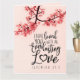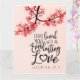 Die Grußkarte mit Inspirationsurteil zeigt ein Naturfoto eines Zweiges von rosa Blume auf rosa Hintergrund. Es enthält einen Teil eines ermutigenden Bibelverses Jeremiah 31:3, "Ich habe dich mit einer immerwährenden Liebe geliebt." Der Gruß kann für eine handgeschriebene Notiz angepasst oder gelöscht werden, und die Karte kann für viele Gelegenheiten benutzt werden. Foto von Patrick Shaun.