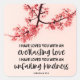 Auf dem Zitiv-Zitat-Aufkleber wird ein Naturfoto eines Zweiges rosa Blume auf rosa Hintergrund dargestellt. Es zeigt eine ermutigende Bibelverse Jeremiah 31:3, "Ich habe dich mit einer immerwährenden Liebe geliebt, ich habe dich mit einer unerschütterlichen Freundlichkeit geliebt." Foto von Patrick Shaun.