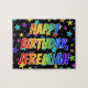 Dieses aufregende und lustige Jigsaw Puzzle Design hat die Botschaft "HAPPY BIRTHDAY, JEREMIAH" mit den Buchstaben, die ein farbenprächtiges Regenbogenspektrum inspiriert haben, zusätzlich zu einem lebhaften Sternenhintergrundmuster. Ein spannendes Rätsel wie dieses könnte benutzt werden, um Geburtstagsgrüße an jemanden namens Jeremiah zu senden. [~Z0000468]